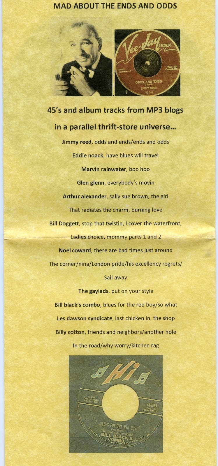Barely could crank this 'un out! Lemme tell you, my life really is stuck in neutral...no real outside stimulation of the ol' back brain t' be found 'round here, and I still gotta rely on ancient Bill Shute packages and deep digs into the record, tape and Cee-Dee archives to sustain any sort of sanity! What's worse, I ain't heard from Brad Kohler since July and that guy usually is as prompt as the landlady one minute before she starts tossing the furniture out onna street...c'mon man, where's that treatise on what was wrong with the first six months of this blog that you were supposed to send me!